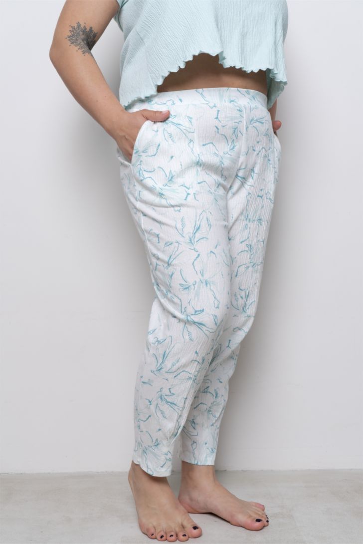 Брюки свободного прилегания, зауженные к низу, пояс на мягкой и комфортной резинке. В боковых швах брюк функциональные карманы. Модель представлена в трех цветовых решениях.