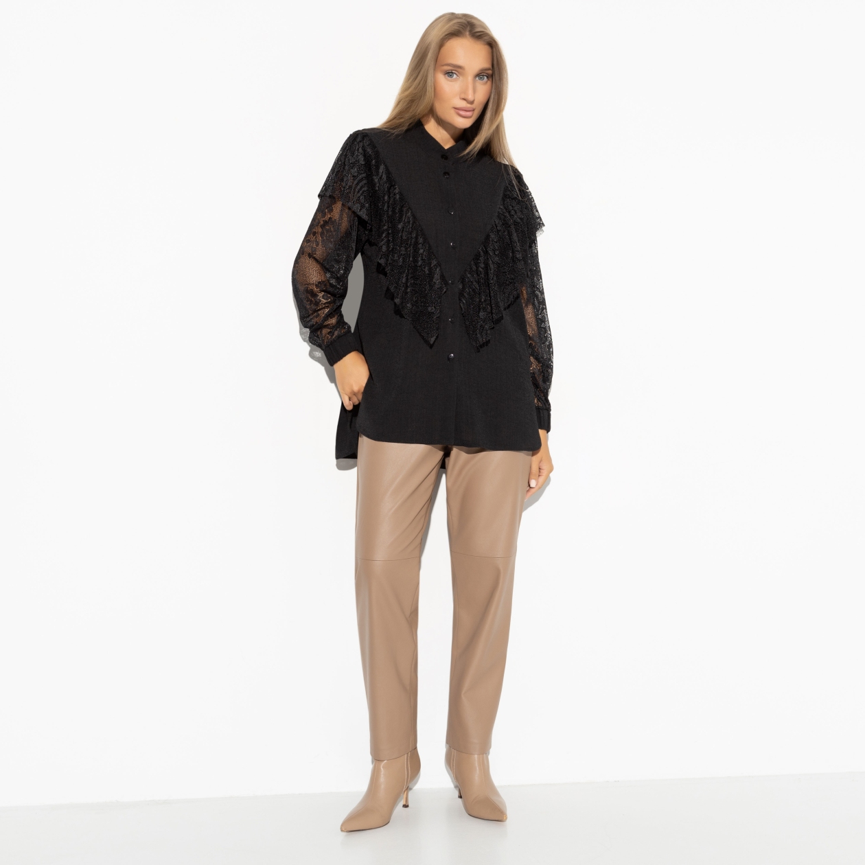 Рубашка «Only You» — это отличный товар для оптовых закупок, идеально подходящий для тех, кто хочет выделяться и привлекать внимание. Изготовленная из ткани «блури» (47% лён, 25% нейлон, 25% полиэстер, 3% спандекс), она сочетает в себе лёгкость и элегантность, что делает её востребованной среди покупателей. Мягкое кружево «гофре» с лёгкой прозрачностью создаёт утончённый и изысканный образ, добавляя женственности и смелости.