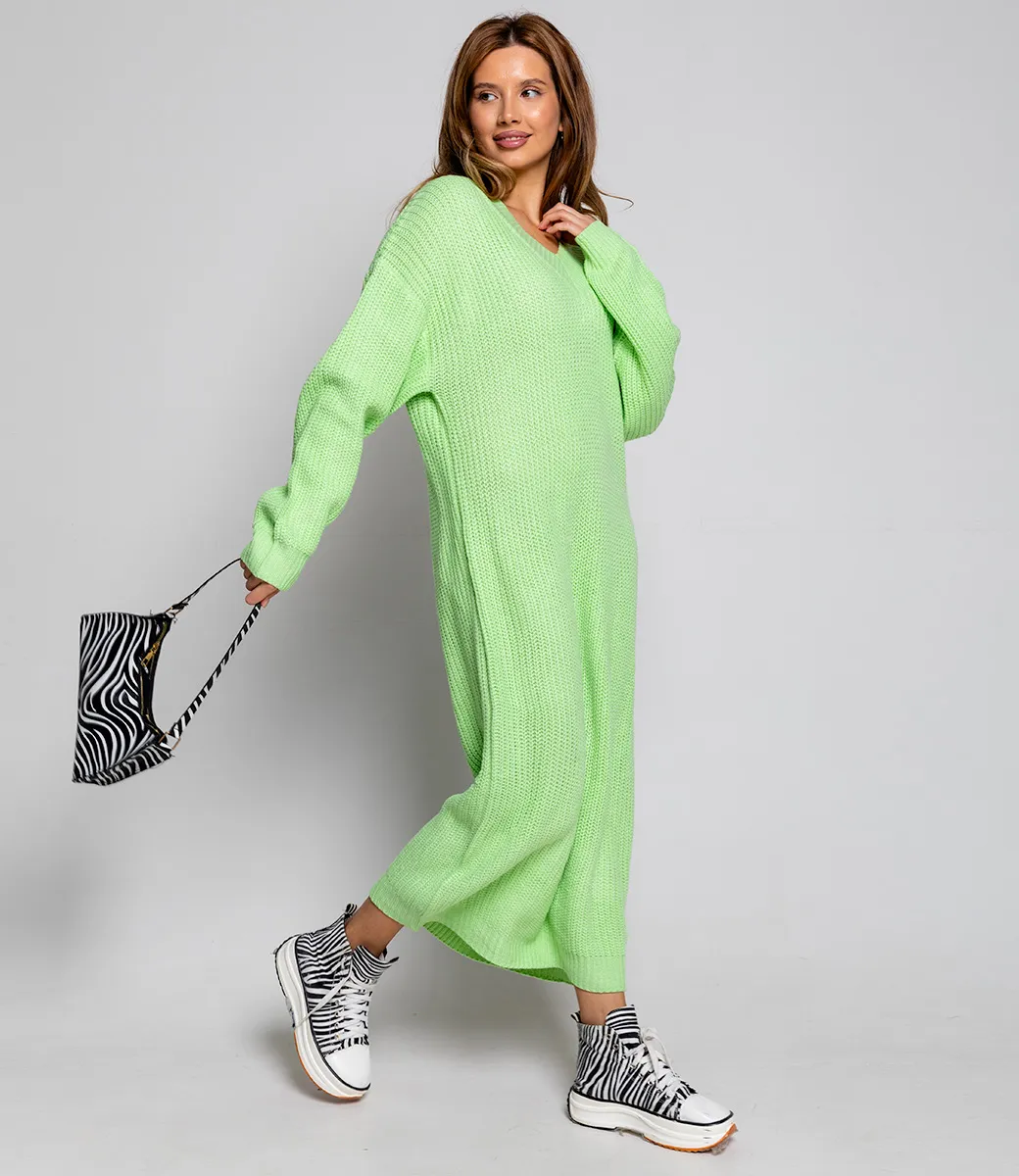 Длинное платье свободного покроя из плотной ткани отлично подойдет для осенней погоды.