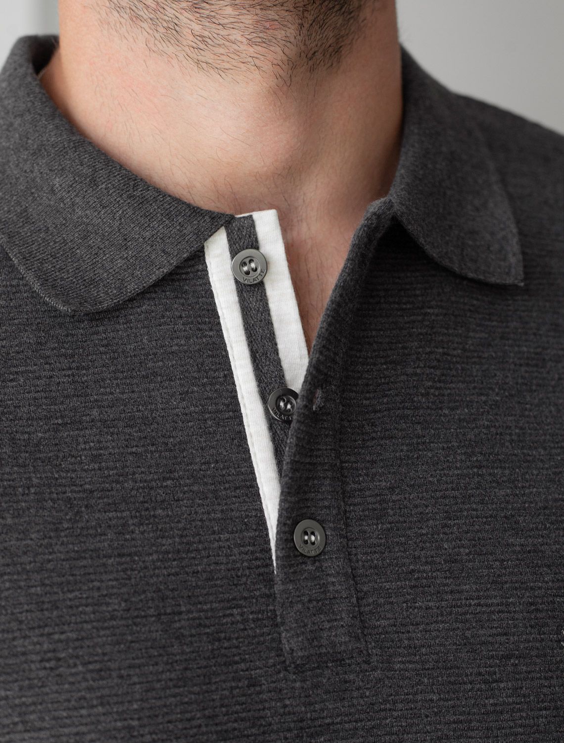Стильный лонгслив темно-серого цвета с эффектом меланж с плетеным воротником поло с застежкой на металлические пуговицы выполнен из премиального хлопка в сочетании с эластаном . Невероятно мягкая ткань из натуральных волокон - она едва ощутима на коже и словно обнимает тело. Материал при касании кажется бархатистым, при движении он словно повторяет все мельчайшие линии фигуры. По свойствам материал сочетает в себе практичность и нежность: отлично проgускает воздух, сохраняя ощущение свежести в течение всего дня, при этом в нем тепло в прохладную погоду.Идеально подходит для чувствительной кожи, не вызывает раздражения и дискомфорта. Удобный отложной воротник с контрастной отделкой делает образ современным и стильным, а длинные рукава с манжетами защищают руки при ветреной погоде.