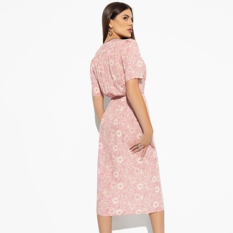 Платье изготовлено из высококачественного штапеля, который на 100% состоит из вискозы. Этот материал обеспечивает мягкость, легкость и комфорт. Ткань приятна на ощупь, дышащая и не вызывает раздражения на коже, что позволяет вам чувствовать себя комфортно в течение всего дня. Платье сохраняет свою форму и цвет даже после множества стирок, оставаясь таким же ярким и привлекательным.