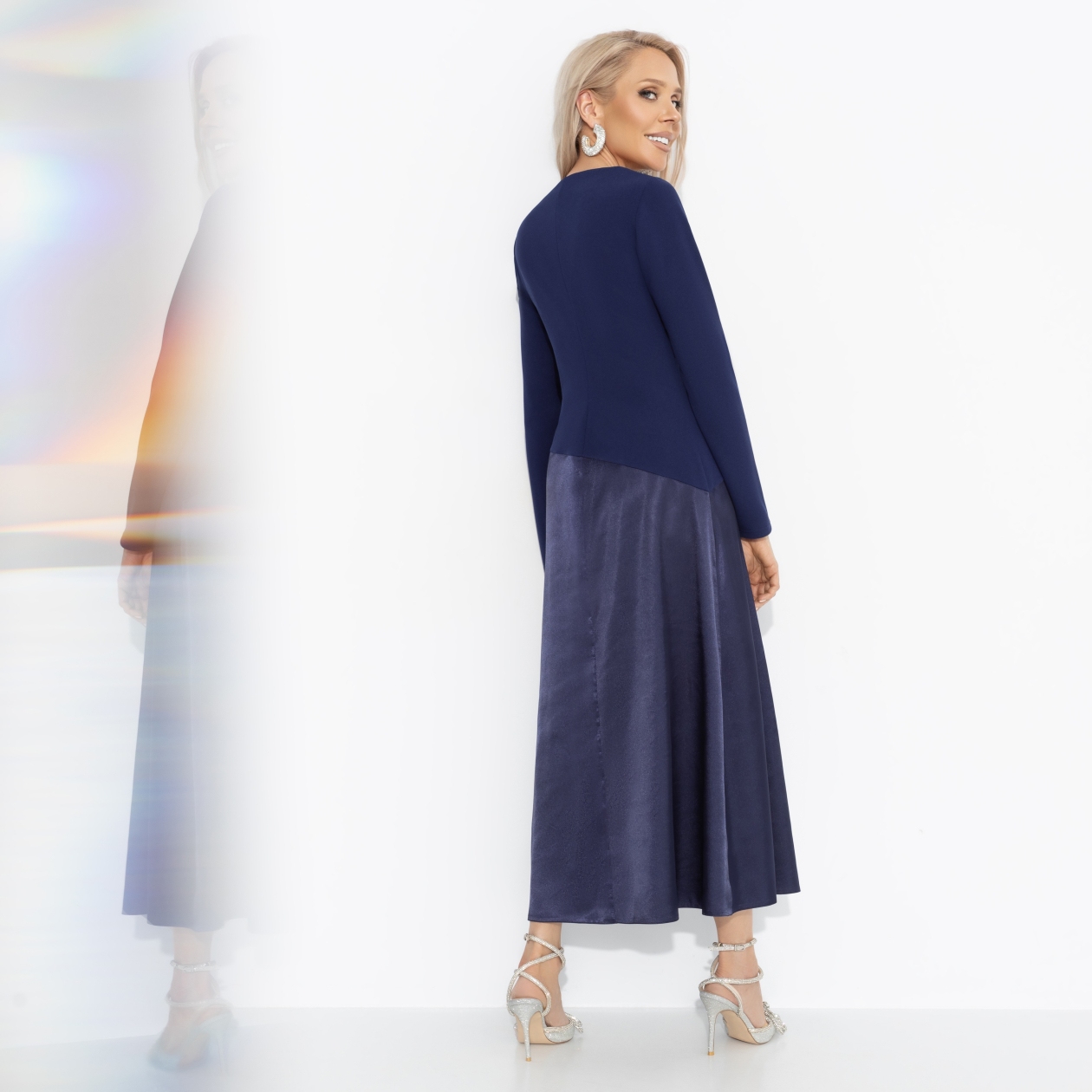 Бархатное небо Петербурга озаряют фейерверки, а каждый миг кажется волшебным. Глубокий синий цвет твоего нового платья идеально отражает атмосферу праздничных огней, ожидания новых встреч и исполнения желаний. Асимметричная линия, сияние ткани, идеальная длина для комбинации с любой верхней одеждой. В таком образе хочется не спать до рассвета и загадывать самые смелые мечты.