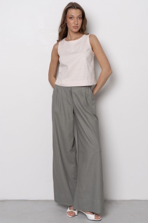 Укороченный топ на широкой бретели с вырезом «лодочка» – невероятно женственная модель. Для удобства в модель добавлены вытачки. В сочетании с широкими брюками визуально увеличивает длину ног, делая образ утонченным и романтичным. Модель представлена в двух цветовых решениях.