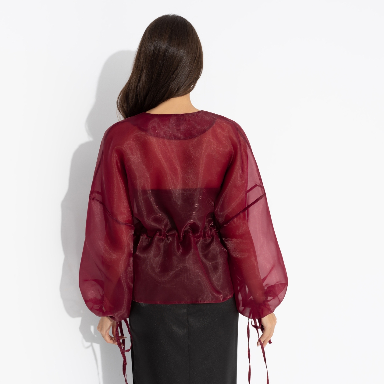 Ты зашла в бар и заказала бокал Бордо. Хотела насладиться приятным одиночеством. Но в жакете ЧАРУТТИ сделать это не удалось. Каждая вторая женщина хотела узнать, откуда жакет, каждый первый мужчина хотел познакомиться. Ни минуты покоя. Жакет свободной посадки на кулиске. Линия плеча спущена. Рукава дополнены тонкими завязками. Изделие просвечивает.