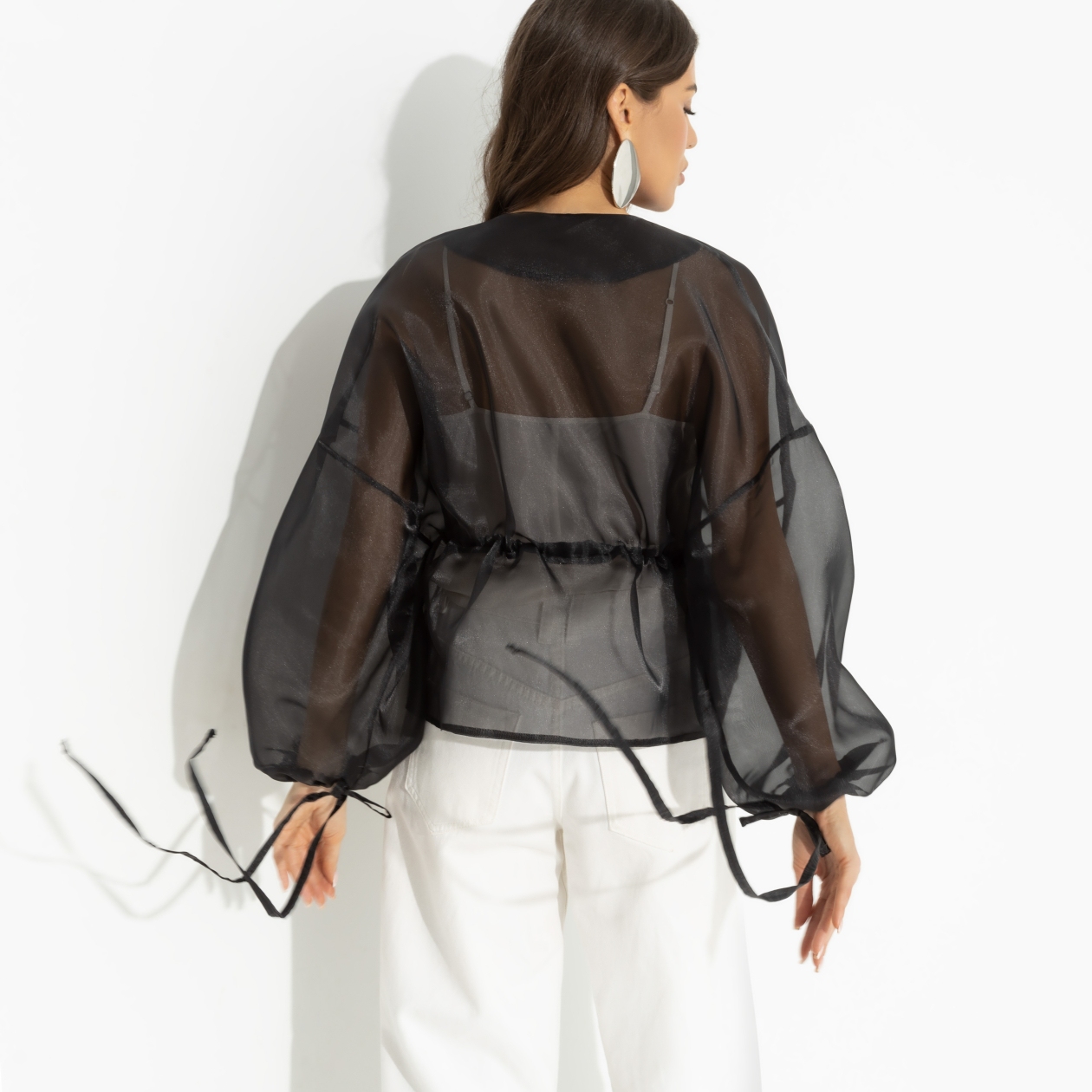 Жакет из органзы «Вершина восхищения» — это не просто одежда, а ваше уникальное заявление о стиле и изяществе. Этот укороченный женский жакет, выполненный из полупрозрачной органзы, добавит вашему образу легкости и воздушности. Он идеально подходит для тех, кто стремится к выделению на любом праздничном мероприятии. Пояс на тонких завязках аккуратно подчеркивает талию, создавая элегантный силуэт, а спущенная линия рукава и длинные завязки на манжетах добавляют непринужденности и утонченной изысканности вашему образу.