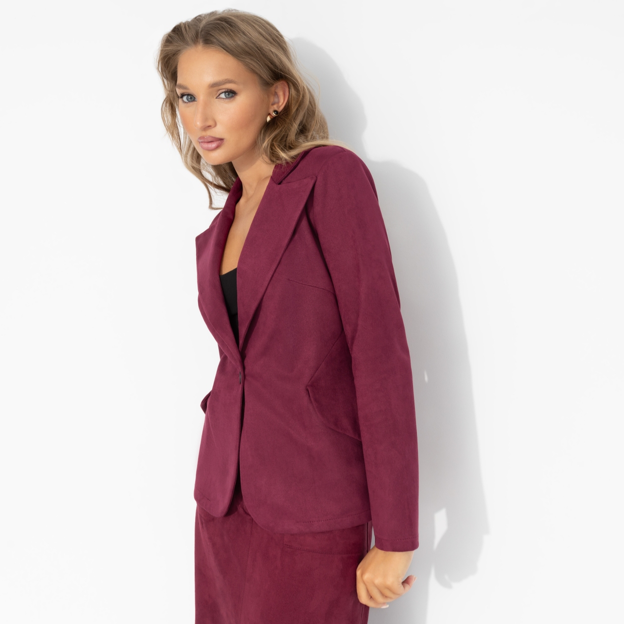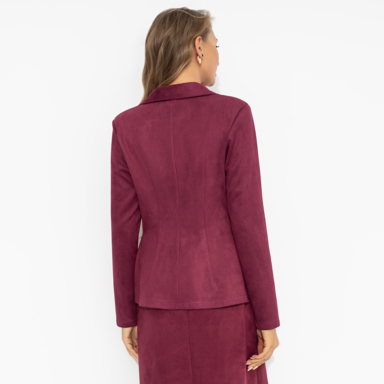 Он идет тебе идеально – как и твоя уверенность. Глубокий винный оттенок, бархатистая фактура и женственность, обрамлённая строгими линиями. Важный штрих к портрету женщины с характером. Жакет приталенного силуэта на подплечниках. Есть карманы.