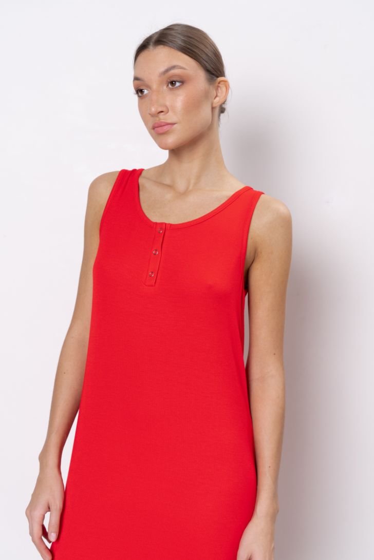 Платье свободного силуэта без рукавов. Вырез горловины круглый, дополнен функциональной планкой на кнопках. Для большего комфорта в боковых швах предусмотрены разрезы. Модель уместна как для дома, так и для комфортного загородного, пляжного отдыха. Платье представлено в трех цветовых решениях.