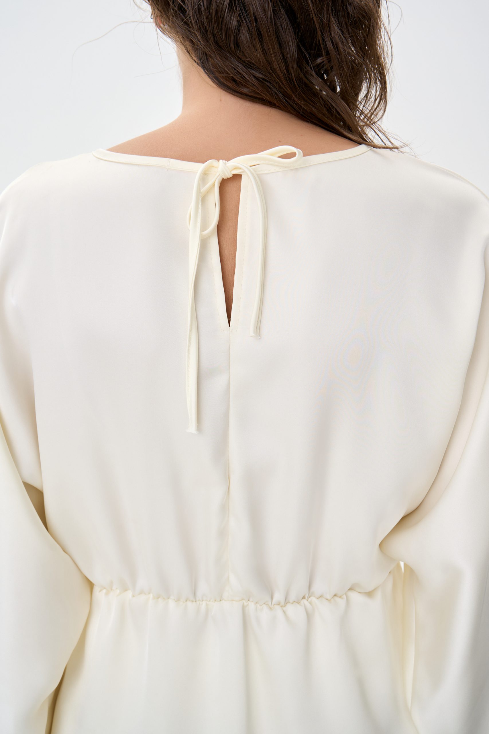 Рукав: длинный, присборенный на манжете-резинке, создающий воздушный эффект и визуальную лёгкость.