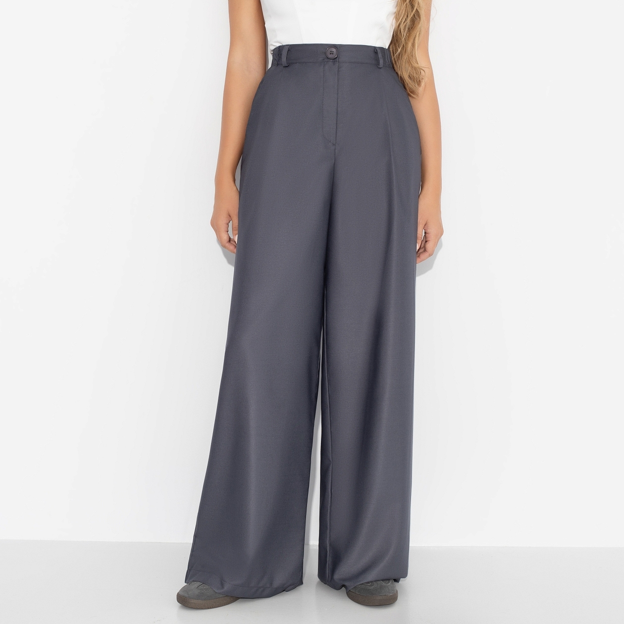 Вещь, которая будет работать на вас каждый день. Брюки ЧАРУТТИ — это фундамент гардероба, воплощающий идеальное сочетание комфорта и безупречного стиля. Их универсальный крой и нейтральный оттенок позволяют создавать бесчисленные образы: от строгого лука с пиджаком до расслабленного с объемным свитером. Свободный силуэт дарит ощущение легкости, подчеркивая утонченную элегантность без усилий. Брюки серые широкие. Посадка высокая, на талии. Брюки на молнии с пуговицей. Есть шлевки, карманы.