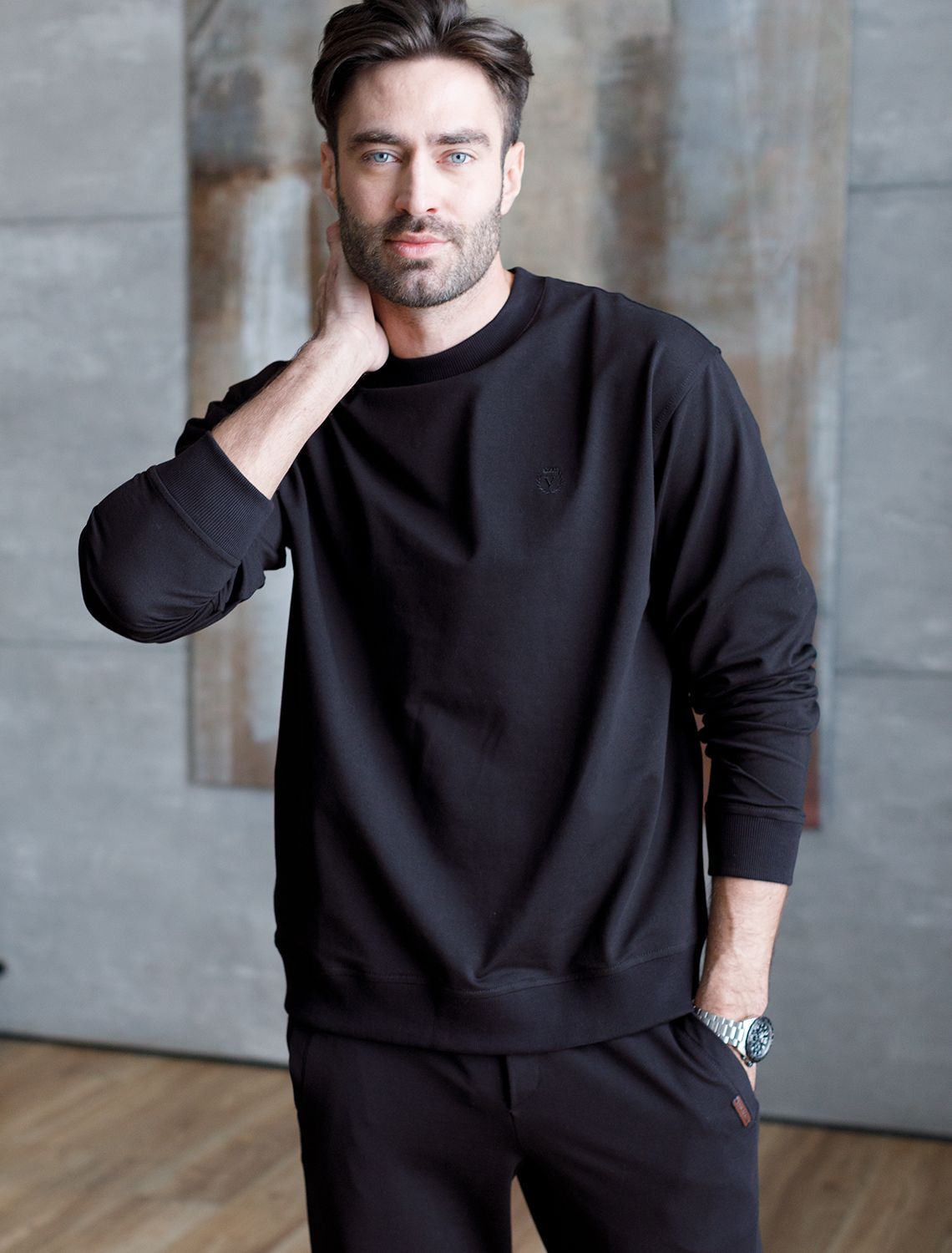 Джемпер с круглым воротом выполнен из премиального эластичного футера двухнитки. Свободный силуэт не сковывает движений. Модель дополнена вышивкой с фирменным логотипом бренда. Сочетается в костюме с брюками U44.005.