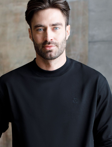 Джемпер с круглым воротом выполнен из премиального эластичного футера двухнитки. Свободный силуэт не сковывает движений. Модель дополнена вышивкой с фирменным логотипом бренда. Сочетается в костюме с брюками U44.005.
