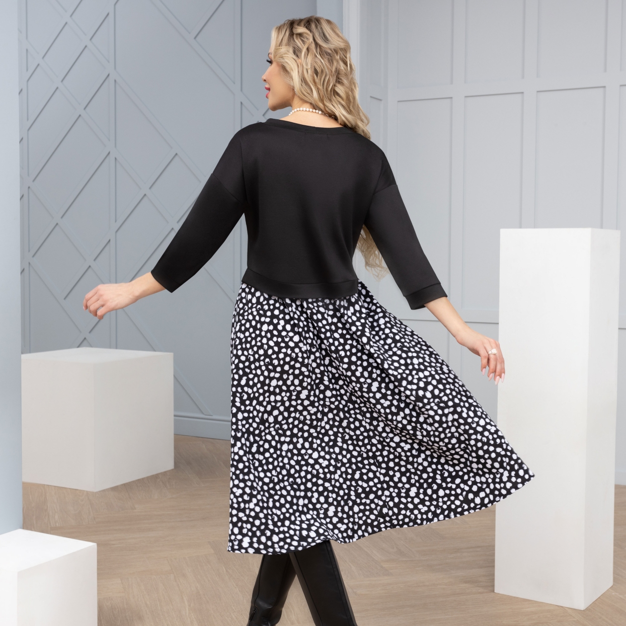 Материал платья — это особая история. Трикотаж «понтирома» и плательная ткань «ниагара» создают удивительное сочетание мягкости и прочности, что делает это платье идеальным выбором для любого случая — от повседневных будней до исключительных вечеров. Приобретение платья оптом позволит вам предложить своим покупателям высокий стандарт качества и комфорта. Изящный крой и оверсайз силуэт подчеркивают уникальность каждой женщины, а возможность выбрать принт, который будет гармонировать с природными оттенками, делает это платье настоящей находкой для любой модной коллекции.