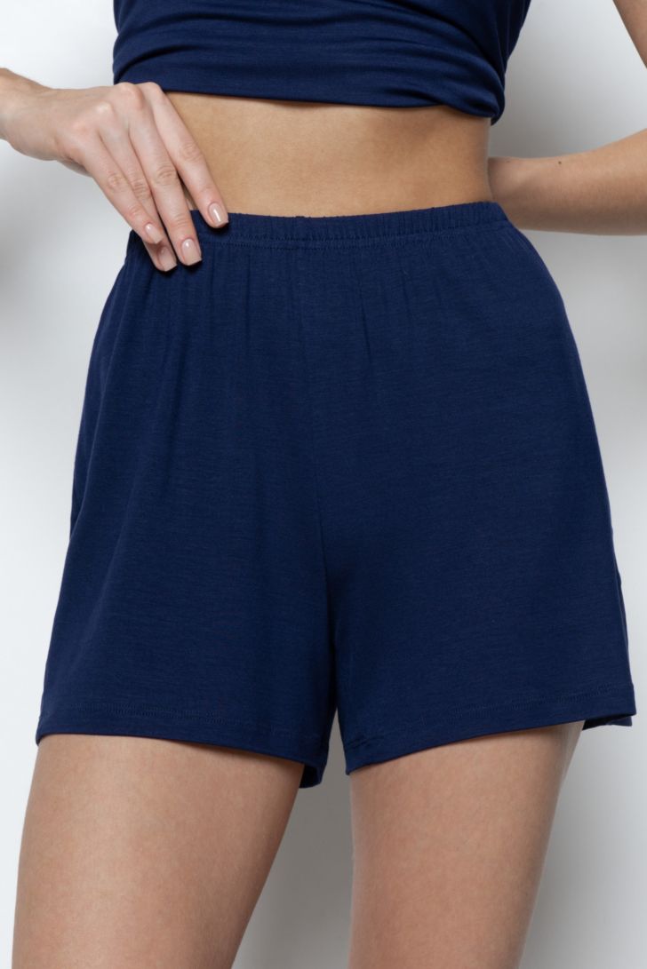 Шорты свободного силуэта с комфортным поясом на мягкой резинке. В боковых швах — декоративные треугольные вставки из сетки, придающие модели воздушность и современный вид.