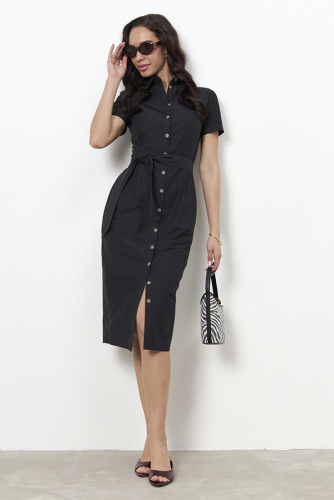 Платье полуприлегающего силуэта из эластичного полотна с жаккардовым анималистичным узором. Втачной длинный рукав. Воротник-стойка с отворотом.