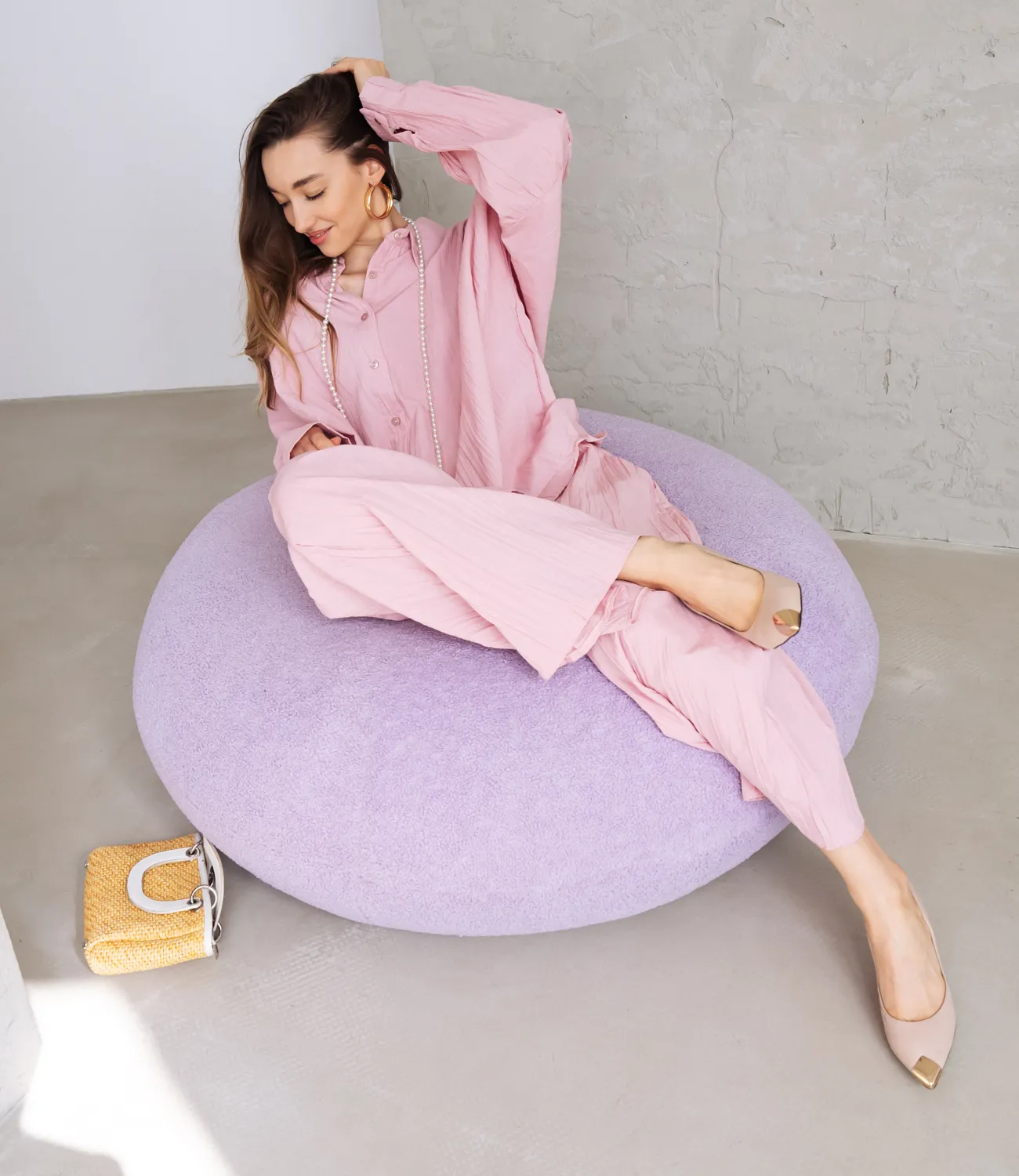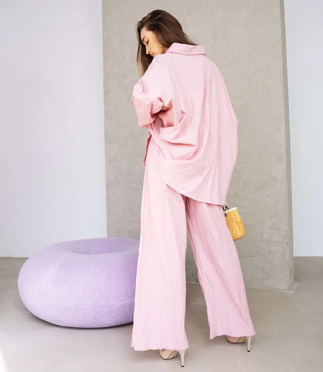 Костюм из Турецкой струящейся ткани высокого качества - подойдет для повседневной носки в жаркую погоду. Комплект состоит из рубашки на пуговицах с длинным рукавом и брюк палаццо.