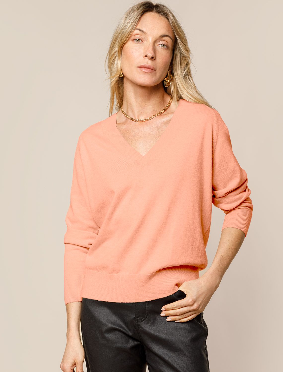 Ст.цена 1990р Джемпер тонкой вязки из хлопка с кашемиром D39.352 персиковый