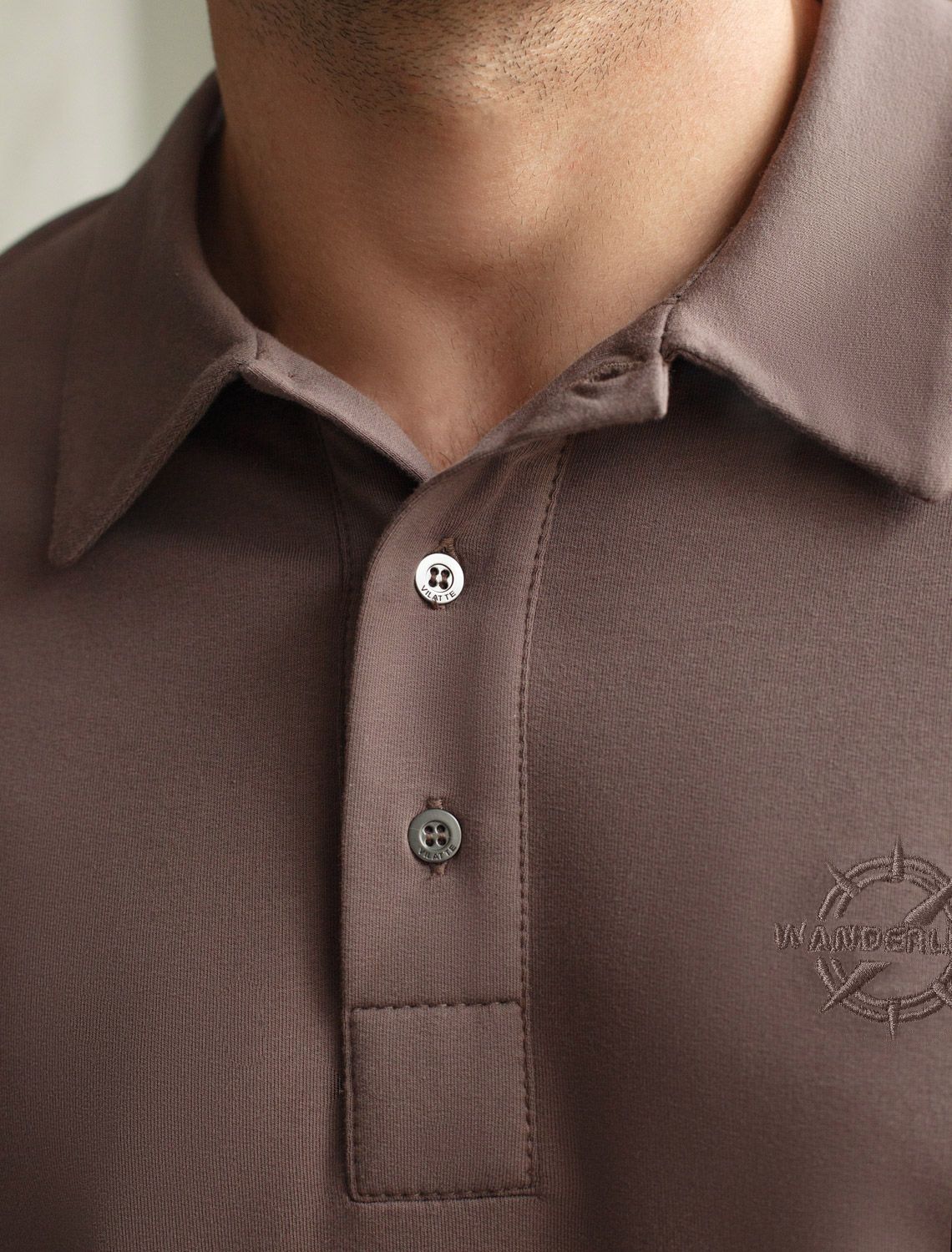 Стильный лонгслив кофейного цвета с воротником поло выполнен из премиального хлопка в сочетании с эластаном . Натуральная ткань обеспечивает легкость, воздухопроницаемость и приятные тактильные ощущения даже когда жарко, позволяет не перегреваться и поддерживает комфортный микроклимат в течение всего дня. Удобный отложной воротник на аккуратных пуговицах делает образ современным и стильным, а длинный рукав защищает руки при ветреной погоде. Поло хорошо садится по фигуре благодаря добавлению эластичных волокон — такой вариант подходит для мужчин любого роста и размеров, не стесняет движений и создает ощущение свободы и легкости.