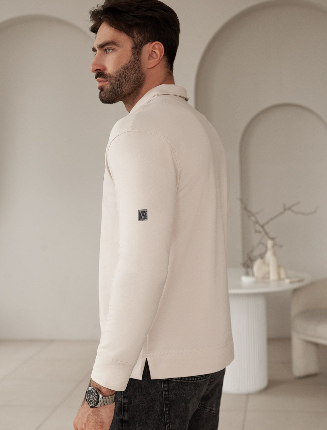 Ст.цена 1990р Лонгслив с воротником поло на пуговицах из премиального хлопка с эластаном U49.064 св.бежевый