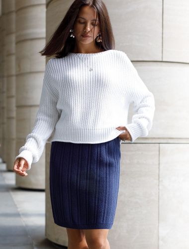 Мини-юбка выполнена из денима с покрытием под кожу. Мягкий и эластичный материал с внутренней тканевой поверхностью обеспечит исключительный комфорт, как вторая кожа. Совет стилиста: прямая мини-юбка хороша в тандеме с любым объемным верхом; рубашка, свитшот или вязаный джемпер. В классическом сочетании – водолазка или свитер мелкой вязки.