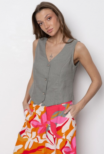 "Наш летний женский жилет из натурального льна с вискозой — это идеальный выбор для тех, кто ценит комфорт и стиль в теплые дни. Он станет прекрасным дополнением вашего гардероба.