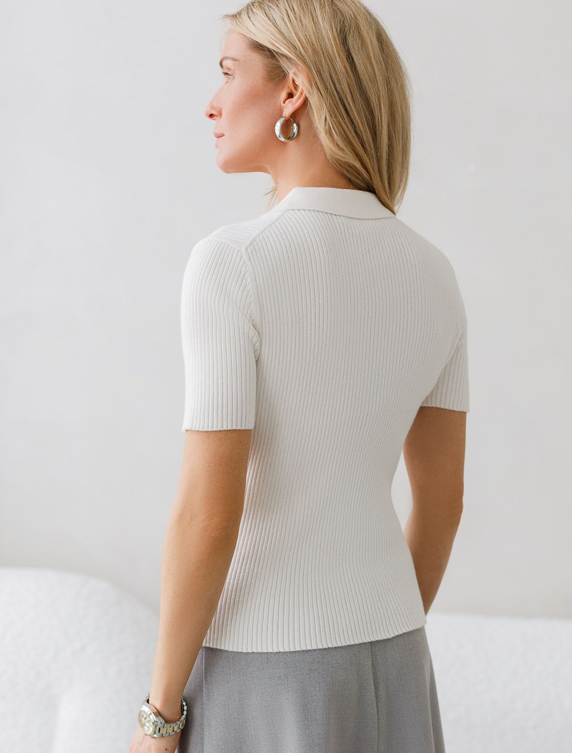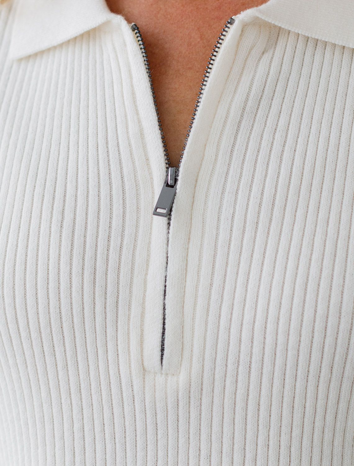 Ст.цена 2090р Джемпер-поло с застежкой на молнии из хлопка с кашемиром D39.351 натуральный белый