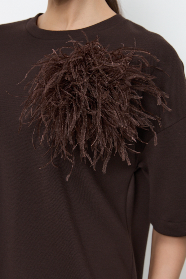 Брошь ручной работы из перьв страуса. Основа фетр, застёжка на ювелирную булавку. Диаметр броши-15 см.