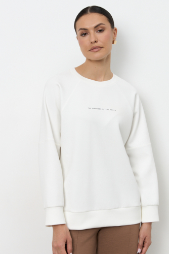 Джемпер из эластичного полотна. Свободный силуэт со спущенной линией плеча и длинным рукавом. Вырез горловины окантован эластичной бейкой. В таблице размеров представлены параметры человека, а не изделия.
