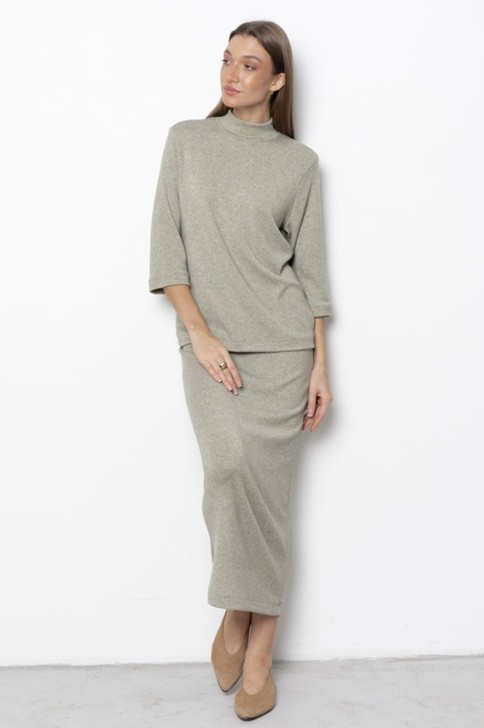 Длинная прямая юбка-карандаш с высоким мягким поясом на резинке. Представлена в трех цветовых решениях.