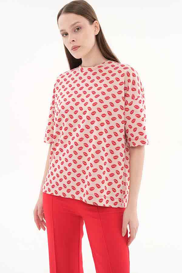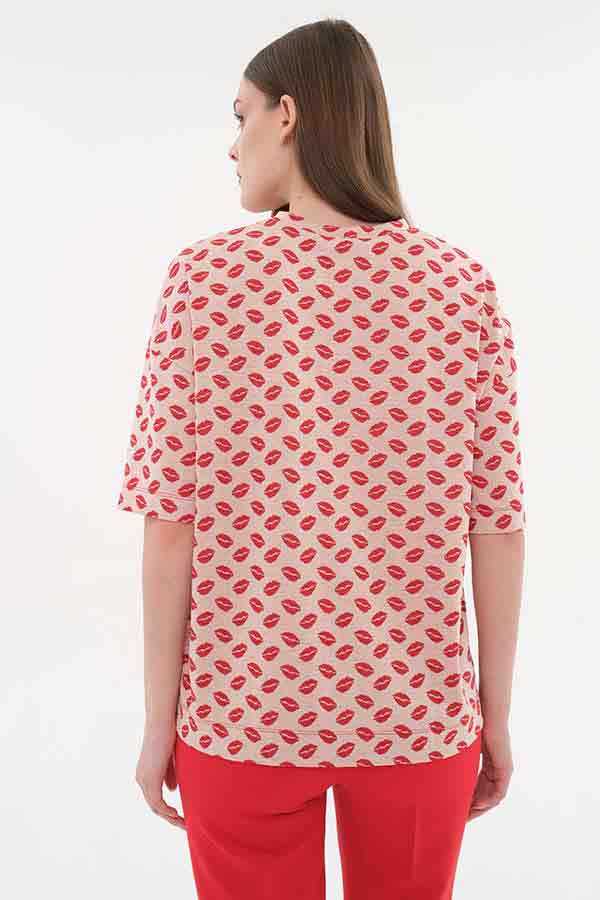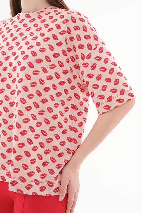 Джемпер свободного силуэта со спущенной линией плеча и рукавом до локтя выполнен из мягкого эластичного полотна. Вырез горловины оформлен бейкой из основной ткани. В таблице размеров представлены параметры человека, а не изделия.