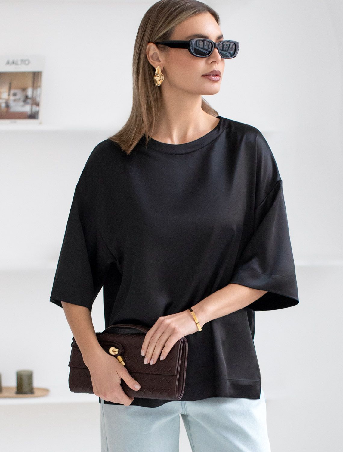 Блузка смотрится нарядно благодаря сочетанию мягкой текстуры сатина и его мягкого не вычурного блеска. Такая повседневная блузка легко впишется в деловой гардероб или станет отличным выбором для вечерней встречи с друзьями. Она гармонично сочетается с юбками, брюками или джинсами — вы сможете создать множество вариантов нарядов на каждый день или подобрать подходящий лук для особого случая, праздника или Нового года.