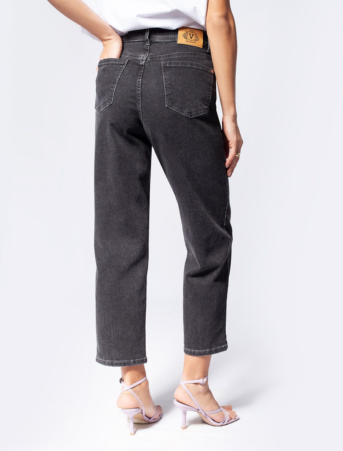 Серые джинсы из плотного прочного хлопка с добавлением нитей эластана. Укороченная модель изящно открывает лодыжки. Высокая посадка грамотно подчеркивает силуэт. Данная модель легко и безупречно поможет составить модный образ вместе с трикотажным поло, свободной блузкой, футболкой или жакетом.