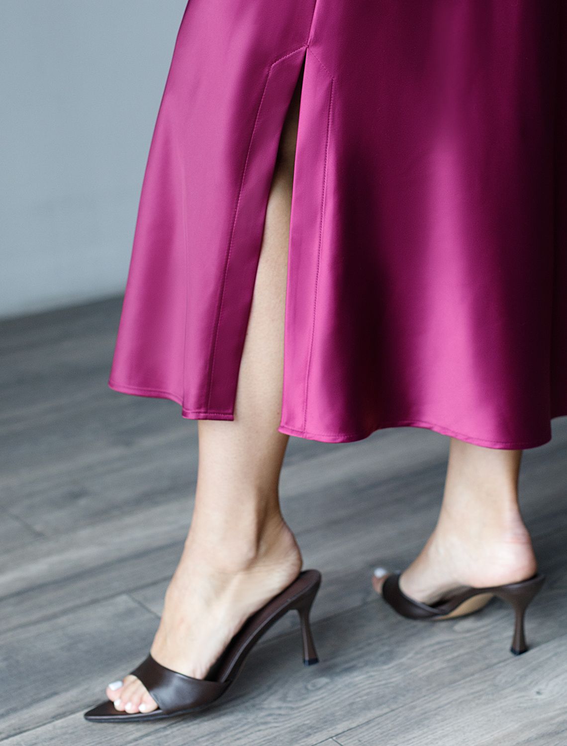 Ст.цена 2190р Юбка миди с разрезом из струящегося плотного сатина D26.205 бургунди