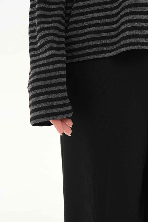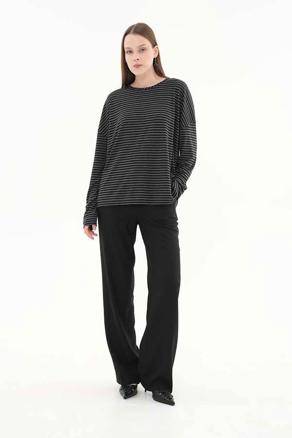 Джемпер из эластичного полотна. Свободный силуэт со спущенной линией плеча и длинным рукавом. Круглый вырез горловины окантован эластичной бейкой. В таблице размеров представлены параметры человека, а не изделия.