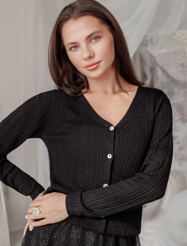 Ст.цена 2250р Жакет из вискозы тонкой вязки с люрексом D31.133 черный