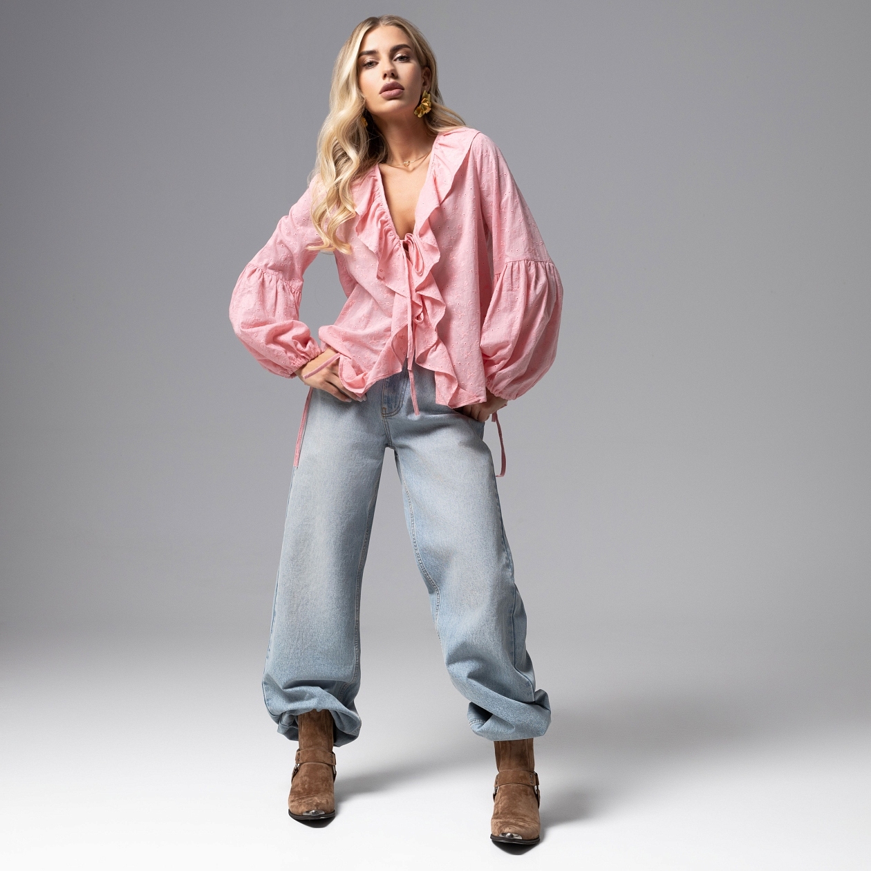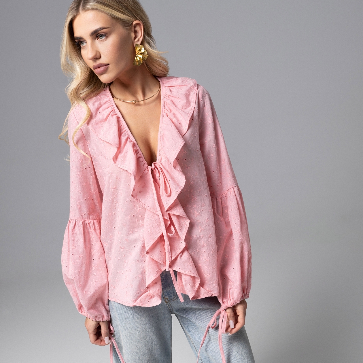Bonjour, Boho! Стиль, который дарит свободу мыслей, свободу движения и свободу самовыражения. Boho – новая роскошь. Блуза из коллекции PREMIUM с воланами, завязками и объемными дизайнерскими рукавами в безупречном исполнении. Блуза свободного кроя. Материал изделия – шитье премиального качества. Глубокий вырез зоны декольте. Акцентный крой рукавов.