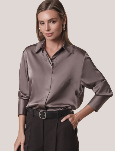Блузка прилегающего силуэта выполнена из формоустойчивого хлопка. Фишкой изделия служат парные контрастные пуговицы. На спинке фирменный металлический логотип бренда. Изделие хорошо держит форму, подчеркивает силуэт и подходит для любой фигуры. Идеальный вариант для респектабельных образов в деловом стиле.