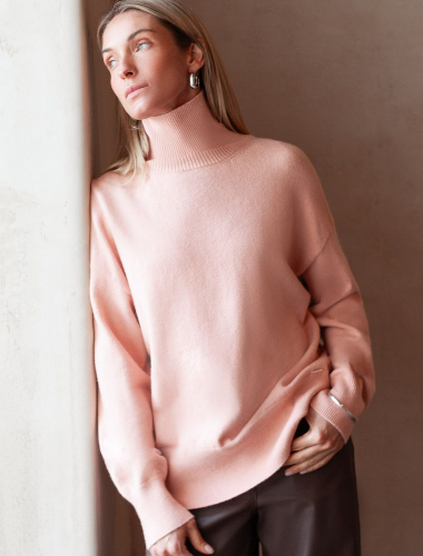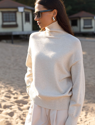 Ст.цена 2290р Свободный свитер с высоким воротом из мягкой пряжи с кашемиром D34.206 овсяный меланж
