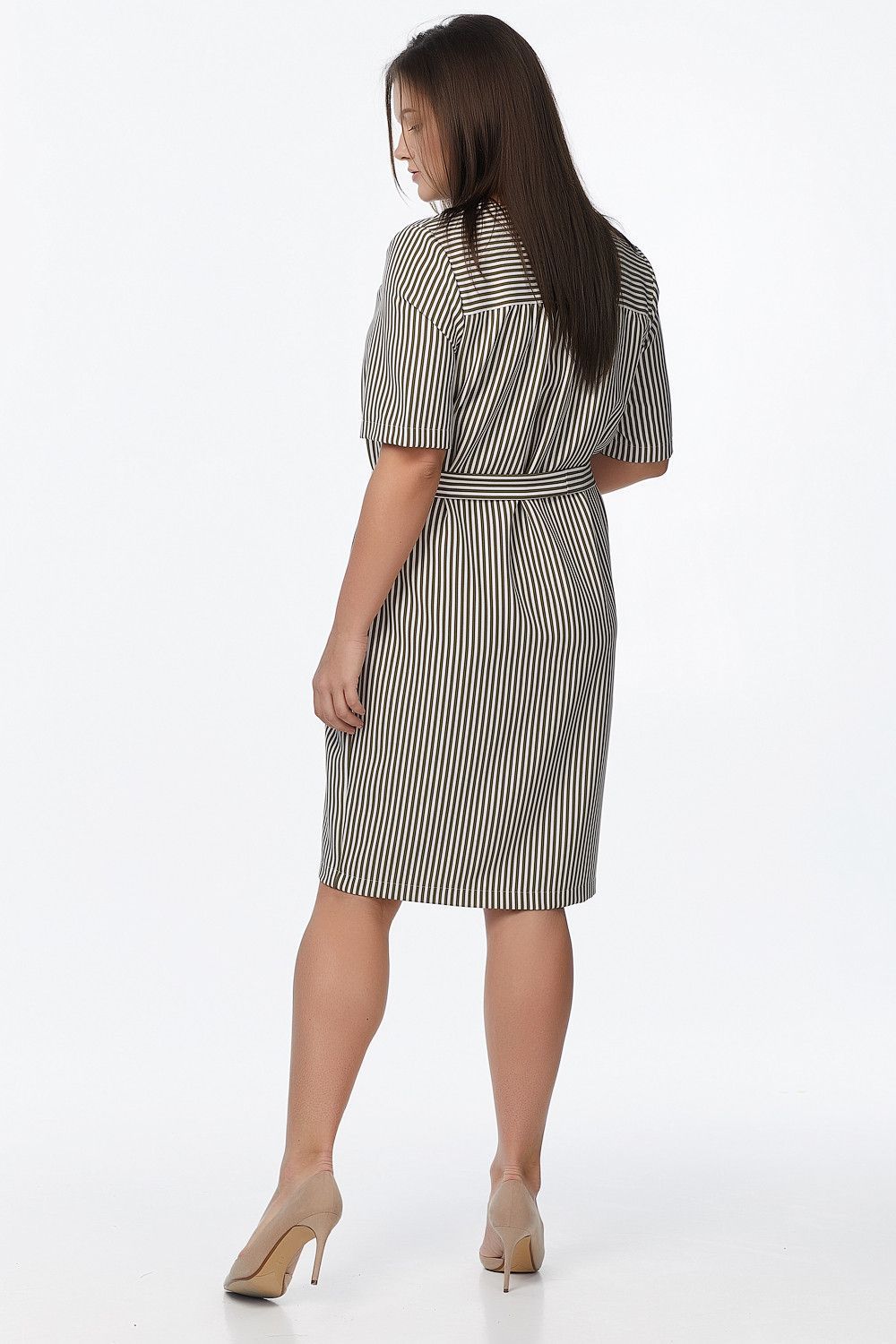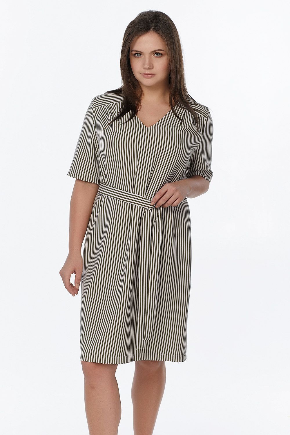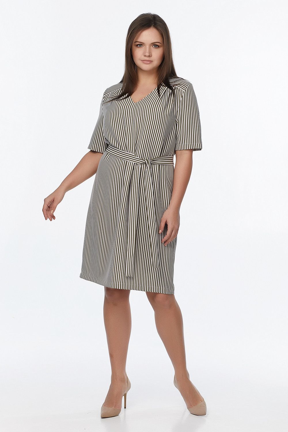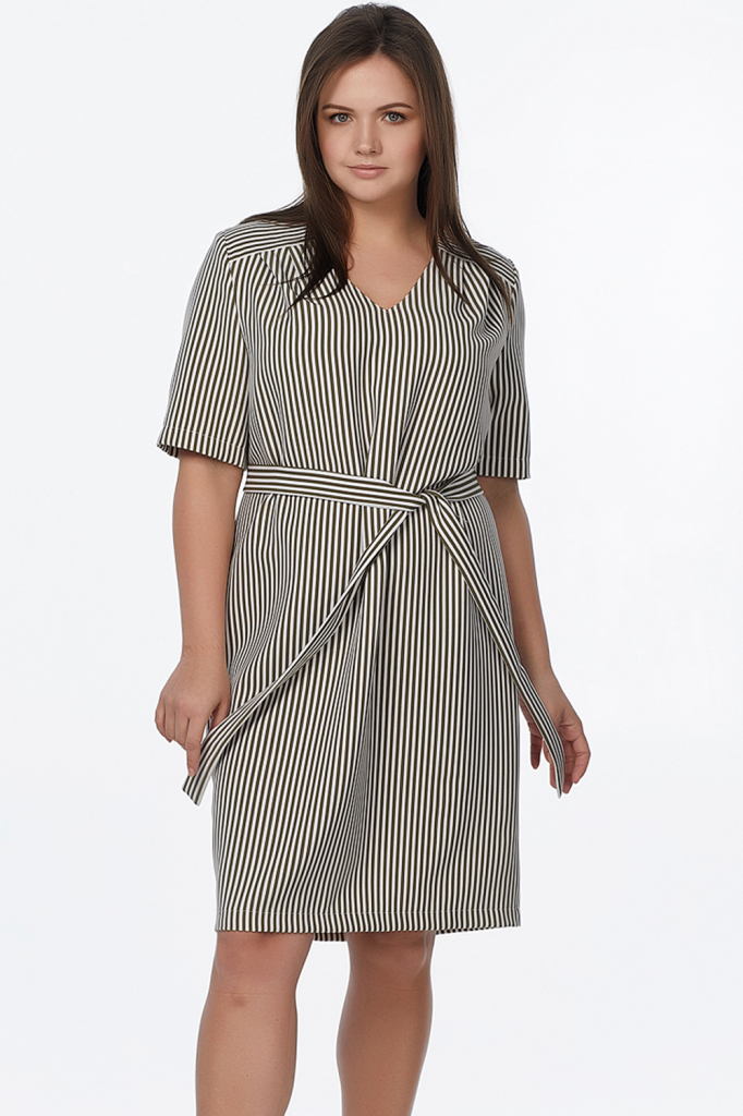 ст. цена2379руб.! Платье летнее прямое большого размера в полоску на хаки