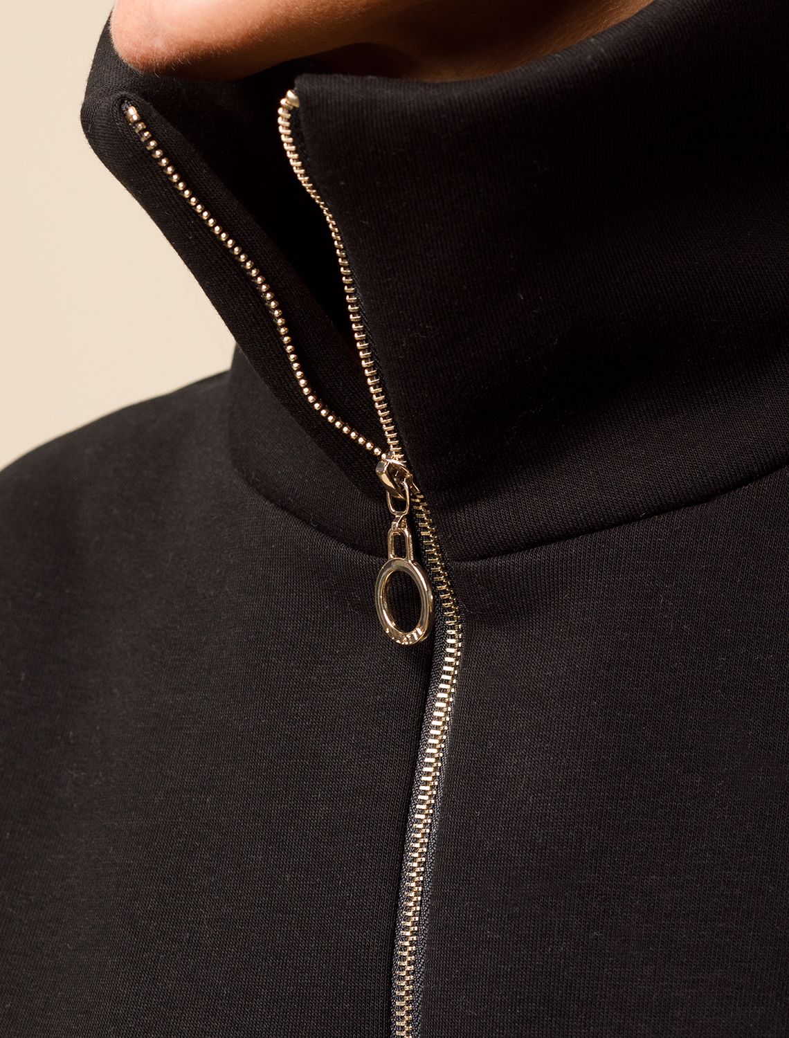 Джемпер с воротом стойкой на молнии выполнен из премиального футера трехнитки с теплым начесом. Модель дополнена золотистой фурнитурой, что поддерживает актуальный стиль спорт-шик. Свободный крой подходит для любой фигуры. Ранней осенью или поздней весной можно носить в качестве верхней одежды. Сочетается в костюме с брюками D44.133.