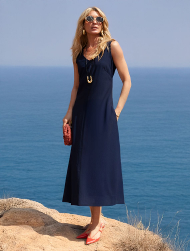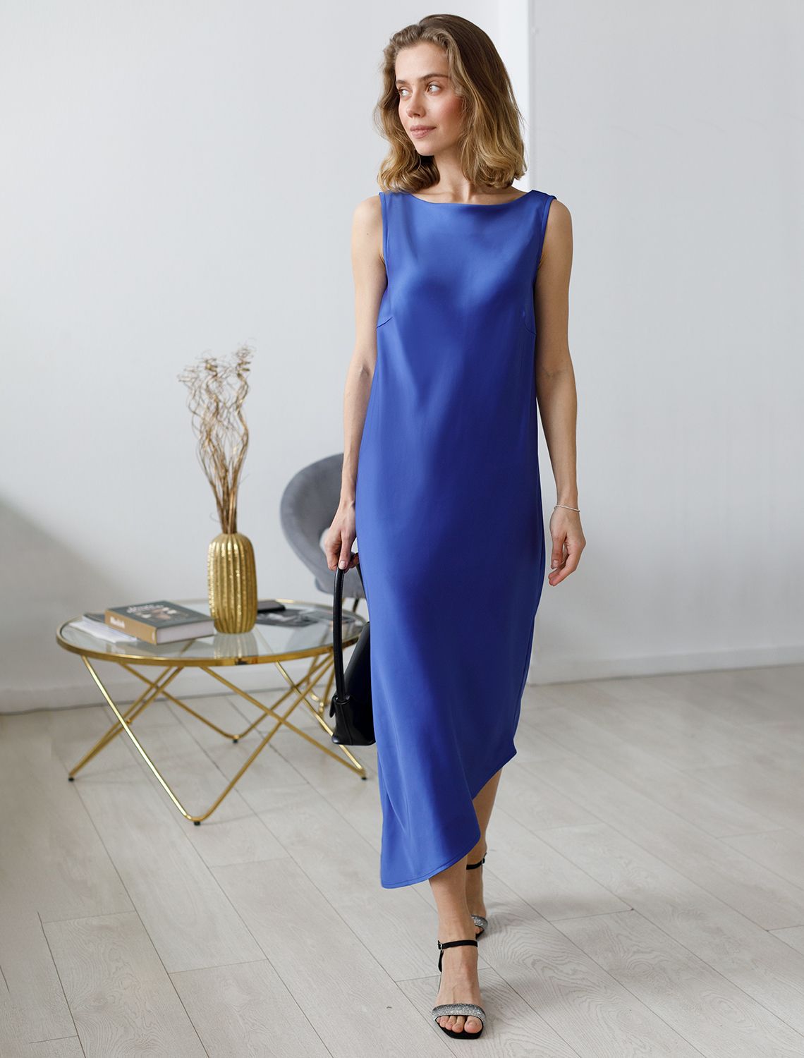 Ст.цена 2390р Платье из плотного полуматового сатина, скроенное по косой D22.532 ультрамарин