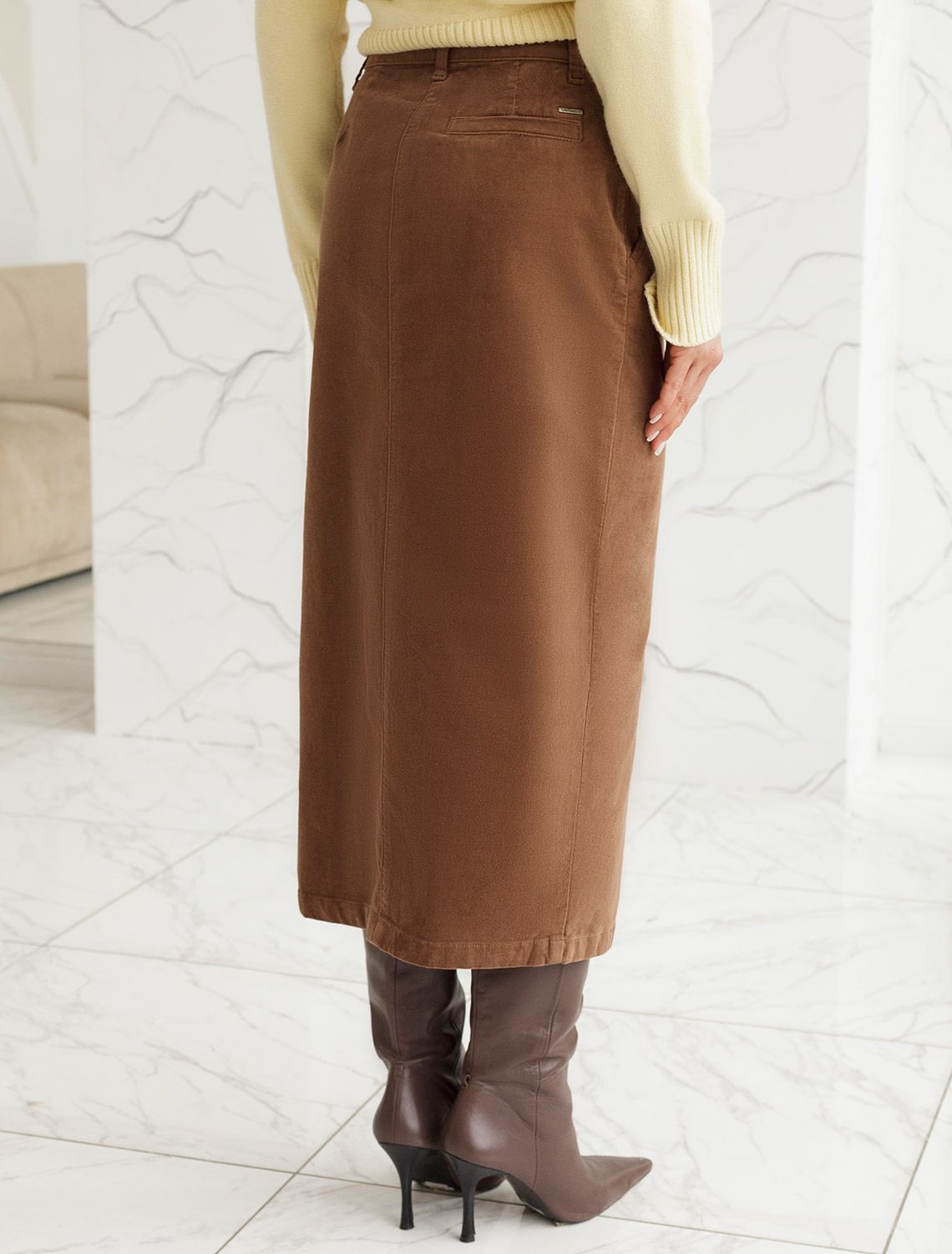 Ст.цена 2390р Юбка из эластичного микро-вельвета D26.189 светло-кофейный