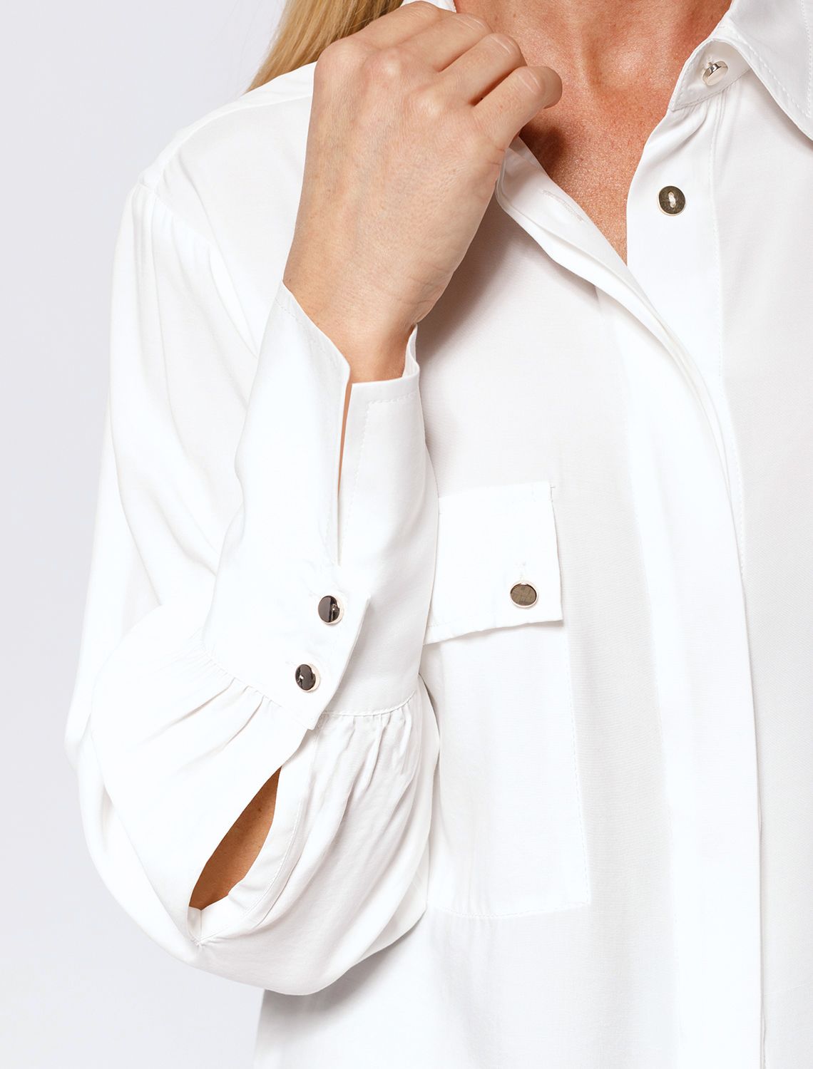 Ст.цена 2450р Блузка из премиальной вискозы и лиоцелла с удлиненным манжетом D29.224 натуральный белый