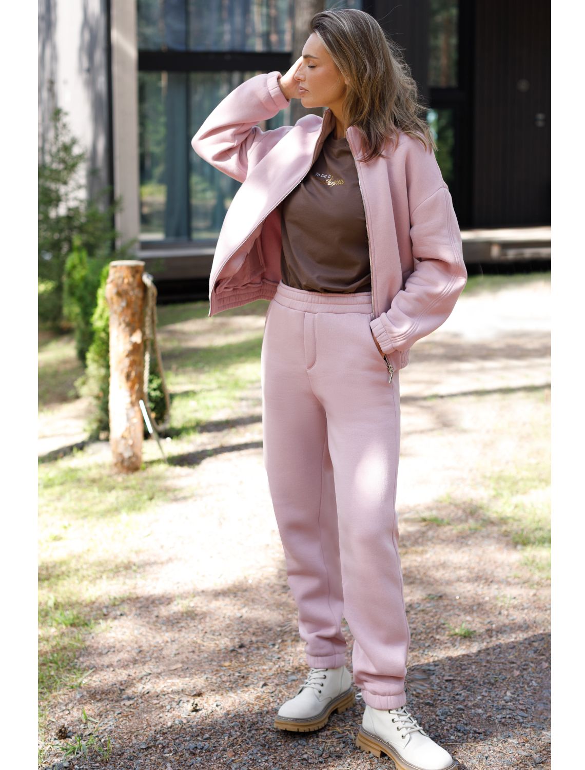 Ст.цена 2490р Брюки джоггеры теплые из футера трехнитики c начесом D44.151 пыльно-розовый