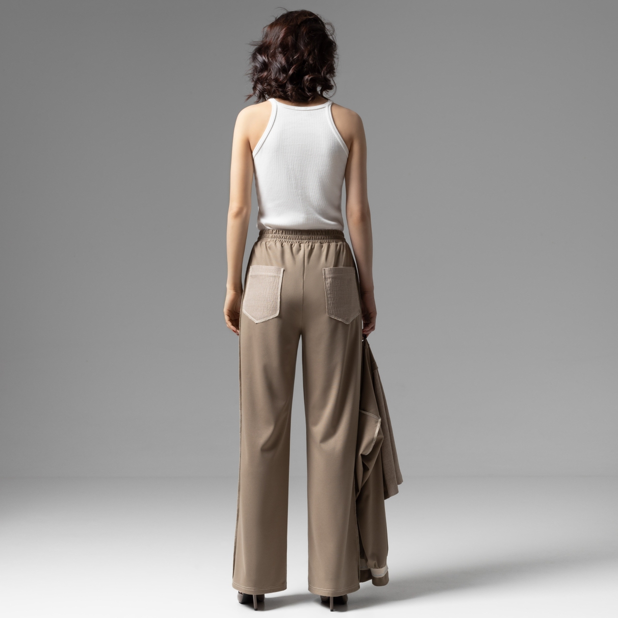 Экстравагантность и элегантность никогда не были еще настолько близко. Нетривиальный крой брюк выдаст вашу неповторимость. Струящийся материал подчеркнет длину ног и плавность походки. Движение только вперед. Брюки прямого кроя в комбинации нескольких видов ткани. Есть карманы. Акцентный крой с техникой наружных швов. Имитация многослойности. Использована фурнитура премиального качества. Пояс на резинке.
