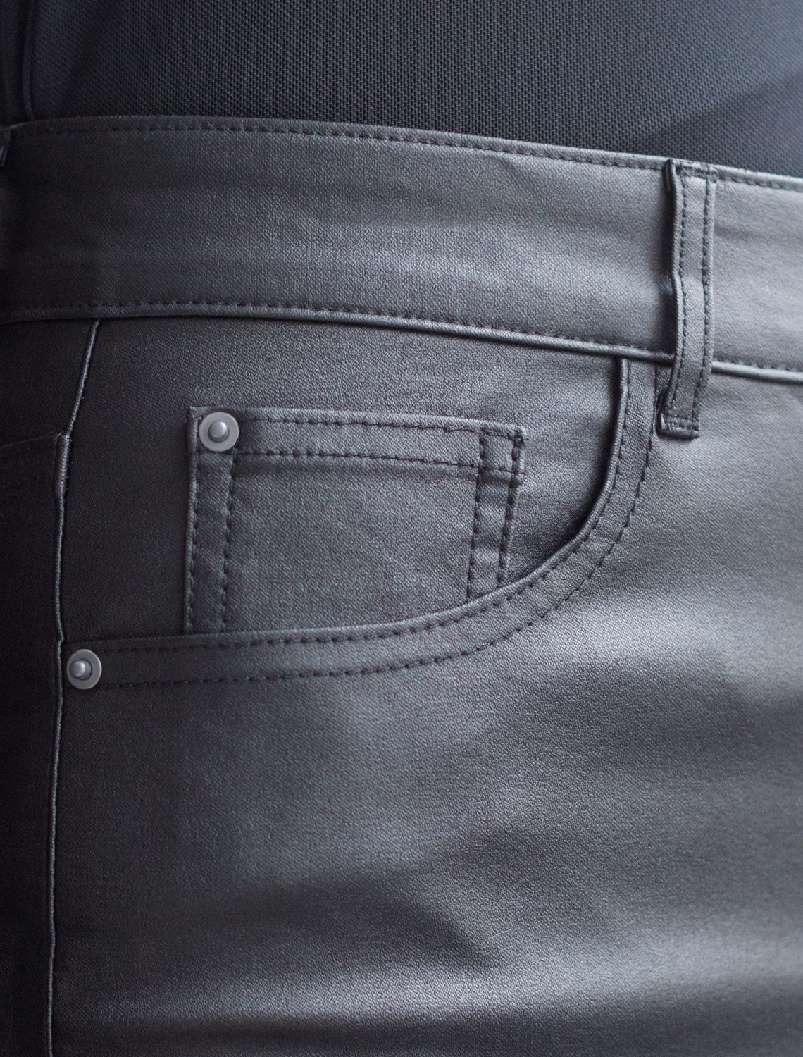 Ст.цена 2490р Брюки слим из эластичного хлопка с покрытием под кожу D24.273 черный