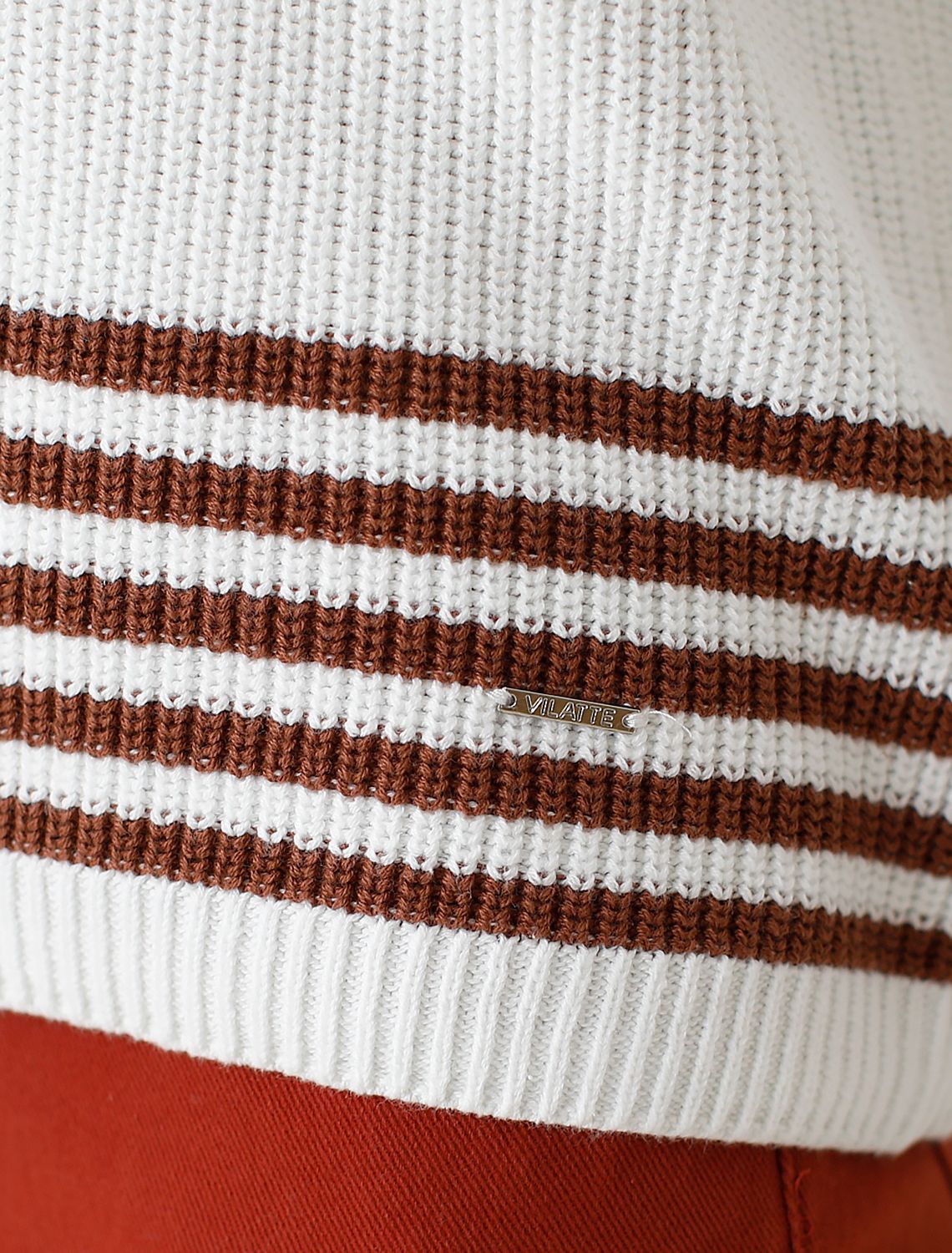Ст.цена 2490р Джемпер крупной вязки из хлопка D39.340 белый_кофейный