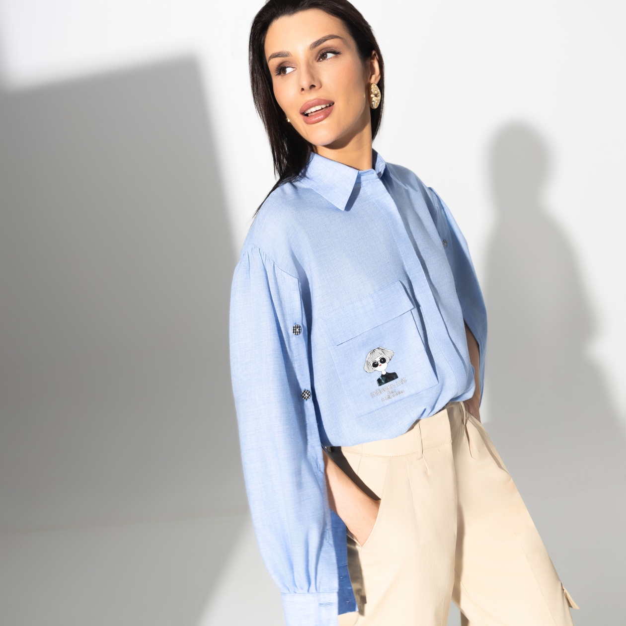 Пуговицы по всей длине рукава добавляют этой рубашке уникальности и функциональности. Этот элемент не только выделяет модель среди других, но и обеспечивает дополнительное удобство, позволяя легко изменять стиль рубашки под настроение и ситуацию. Покупая рубашку «Сюжет для роскоши» оптом, вы инвестируете в товар, который непременно привлечёт внимание покупателей и станет хитом продаж.