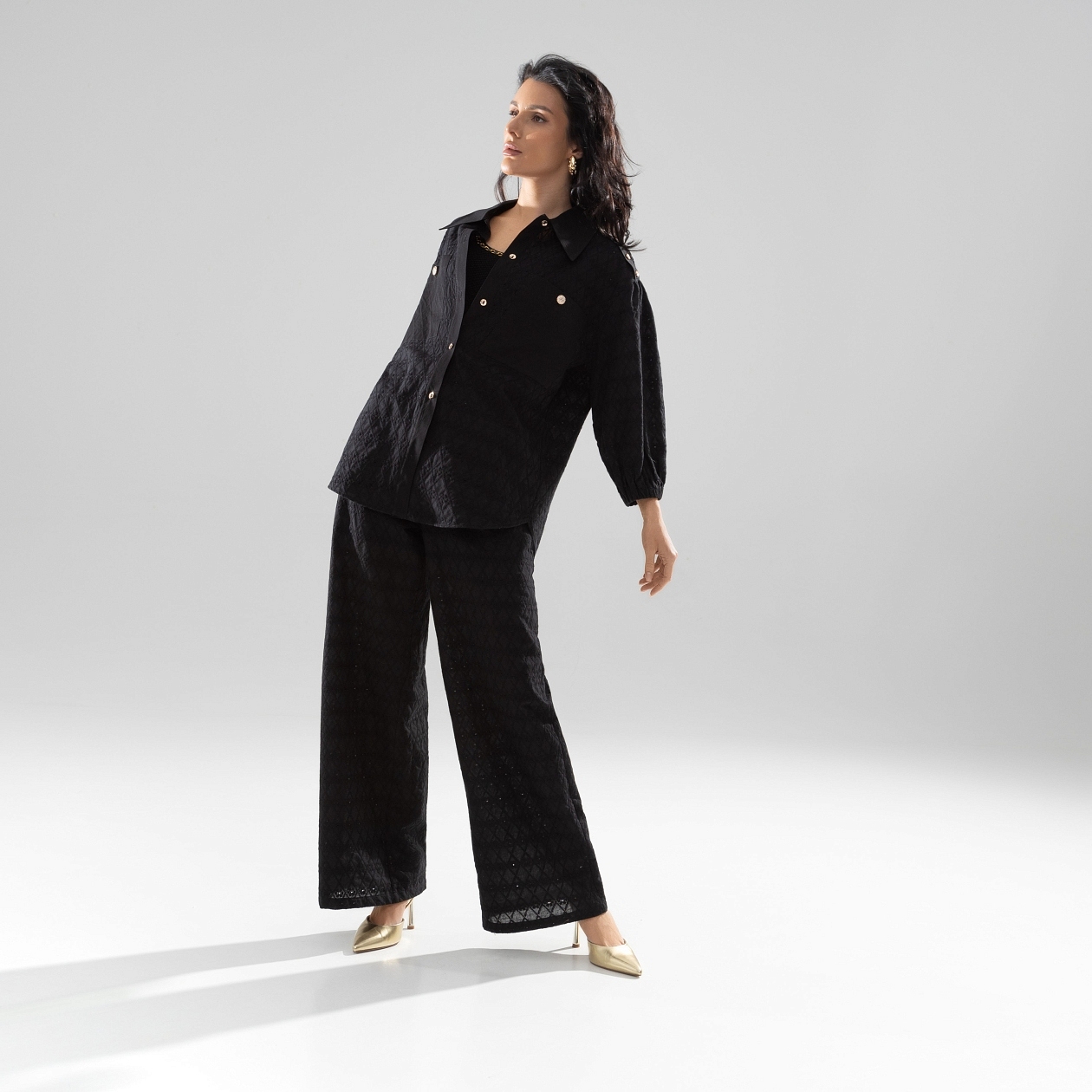 Изготовленные из батиста с вышивкой, штапеля и трикотажного подклада, эти брюки сочетают в себе лучшие свойства материалов – легкость, дышащие свойства и износостойкость. Отличный выбор для тех, кто ищет оптовое предложение, которое удовлетворит самых требовательных клиентов. Уникальная возможность предложить продукцию премиум-класса, которая порадует не только внешним видом, но и долговечностью. Брюки «Роскошный момент» – это не просто одежда, это инвестиция в стиль и уверенность.