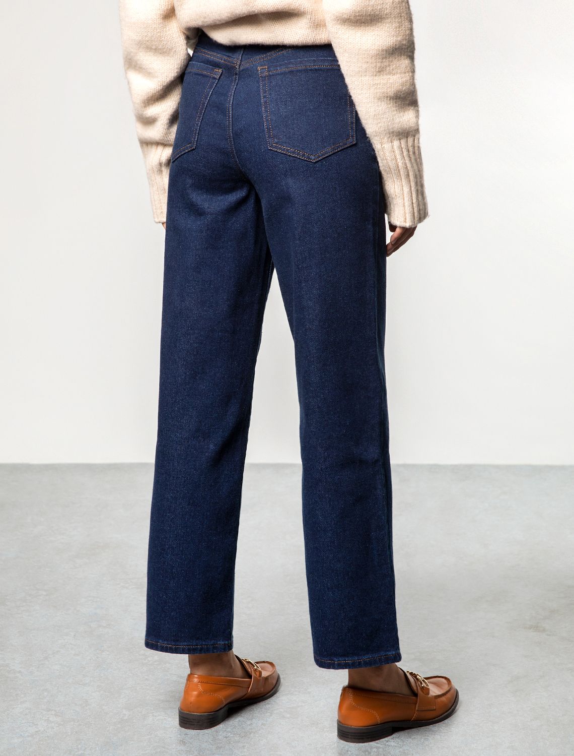 Укороченные прямые джинсы классического синего цвета. Выполнены из хлопка с добавлением эластана. Отлично держат форму почти не мнутся, не деформируется даже после множества стирок. Модель подходит абсолютно любому типу фигуры и вписывается в гардероб с любым верхом и обувью.
