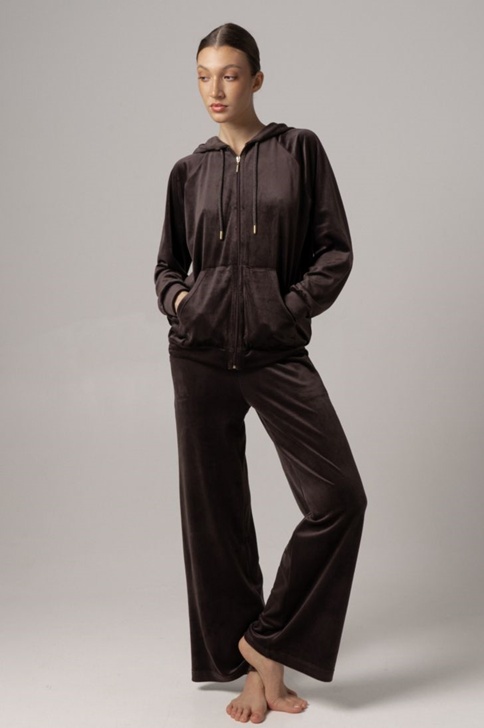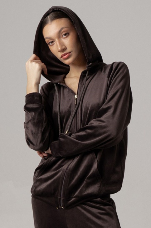Куртка велюровая с капюшоном на застежке молния. Силуэт свободный. Длинный рукав–реглан на манжете не сковывает движений. В боковых карманах куртки функциональные манжеты. Капюшон комфортного кроя на кулисе из декоративного шнура с металлическими наконечниками. Подклад капюшона выполнен из основного полотна. Куртка дополнит образ к любым брюкам casual из личного гардероба. Модель представлена в двух трендовых цветах.